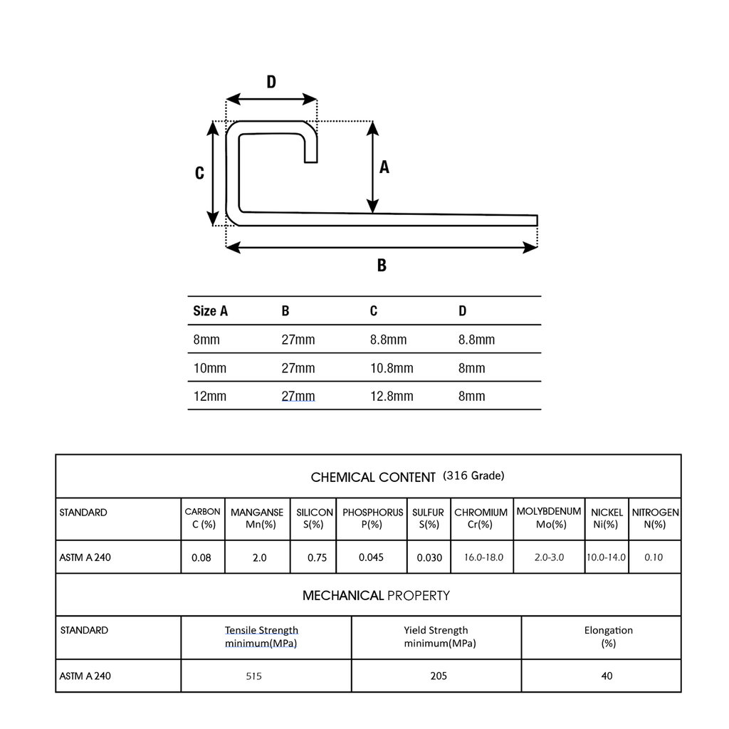 Square Stainless Steel G316 Tile Trim 10mm x 3m