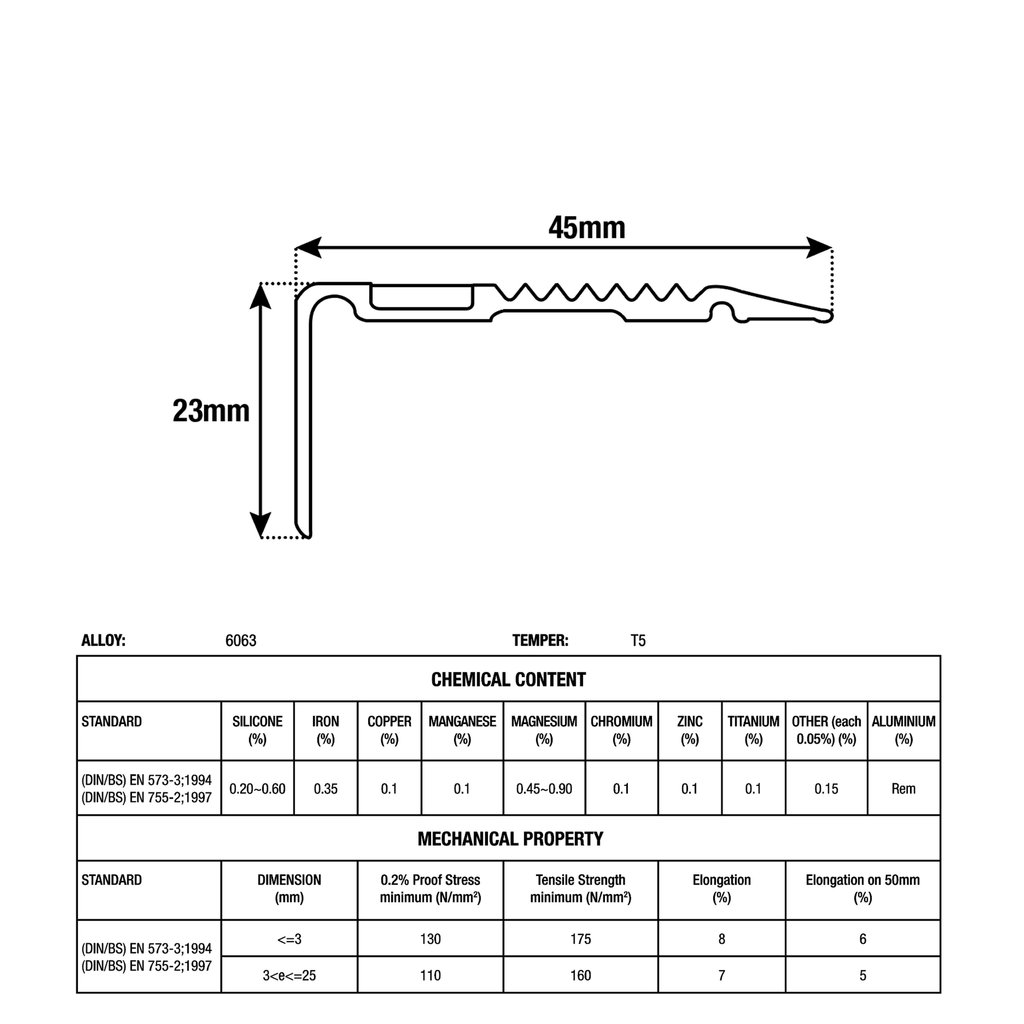 DTA Australia. 3metre - High Strength aluminium. Anti-slip tread pattern. Illumination strip for safety, once the lights have been turned off. UV stable. Adhesive fixing.
